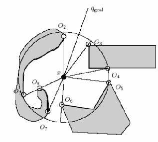 d(x, n)+d(n, qgoal) begins to increase: Continue with boundary