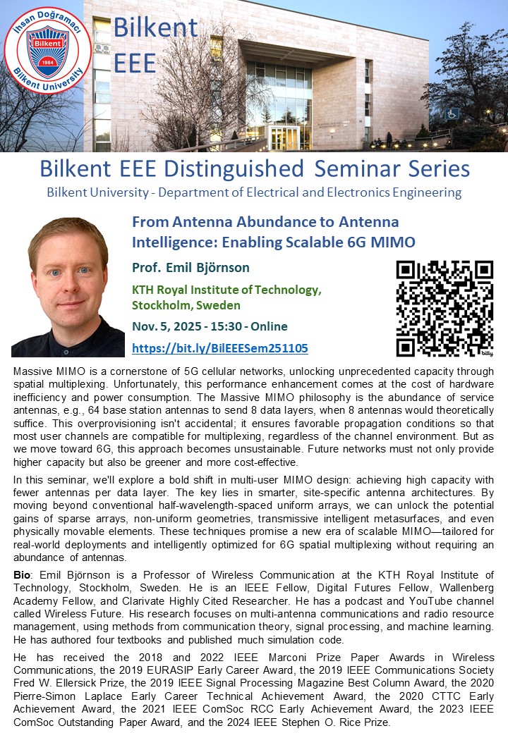 Bio: Emil Björnson is a Professor of Wireless Communication at the KTH Royal Institute of Technology, Stockholm, Sweden. He is an IEEE Fellow, Digital Futures Fellow, Wallenberg Academy Fellow, and Clarivate Highly Cited Researcher. He has a podcast and YouTube channel called Wireless Future. His research focuses on multi-antenna communications and radio resource management, using methods from communication theory, signal processing, and machine learning. He has authored four textbooks and published much simulation code.