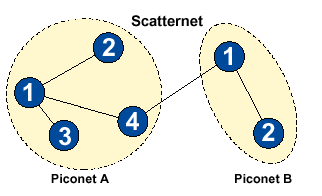 Scatternet. Up to 10 piconets within range can form a Scatternet, with a